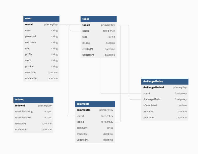 관계가 정말 도움이될만한DB끼리만 관계설정을 하여 현 서비스 구현에 사용을 하였다.