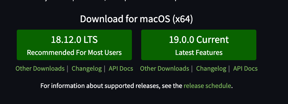 위는 node.js 홈페이지링크 이며 LTS 버전을 다운할 것을 권장한다.