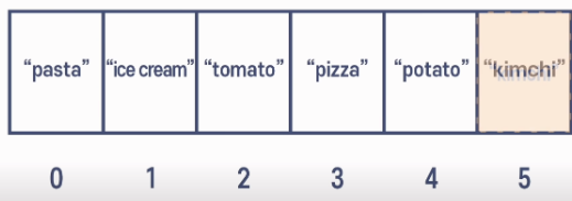 tomato가 배열 중간에 들어가게되는것이다.
