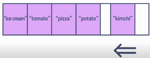 그렇게 된다면 pizza, potato는 각각 오른쪽으로 데이터를 옮기고(그래야 ice cream옆에 빈공간이 생기게 때문)