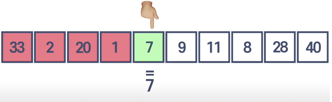 1) 배열에 데이터에서 8보다 큰 값과 작은 값 이 어디 있는지를 파악한다.