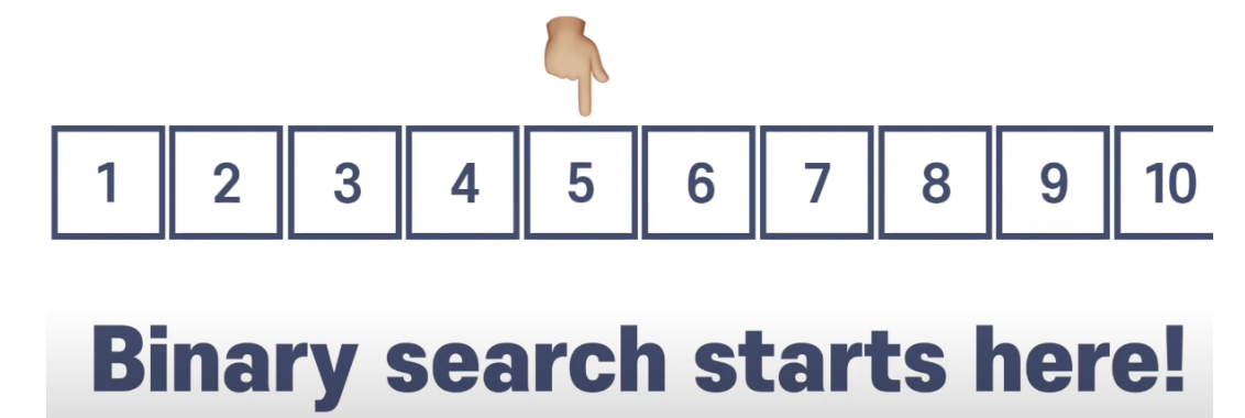 이진검색은 선형 검색과 다르게 처음부터 검색을 하지 않고 중간에서 시작을 한다.