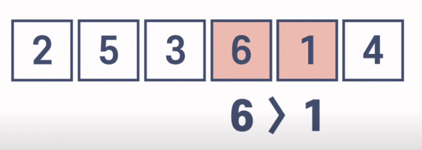 배열의 처음부터 두개의 값을 비교를 한 후 첫 번째값이 더큰 경우 자리를 바꾼다(swap)을 한다.