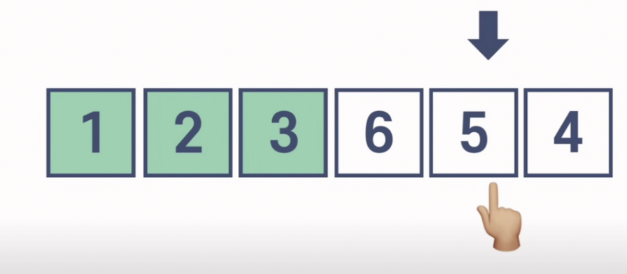 삽입 정렬은 루프를 돌면서 정렬한 요소를 왼쪽에 쌓아가면, 각 요소를 보면서 이미 정렬되어 있는 절반에서 어디로 가야 하는지 찾고 그곳에 삽입한다. 배열에서 두 번째 요소(그 다음 루프에