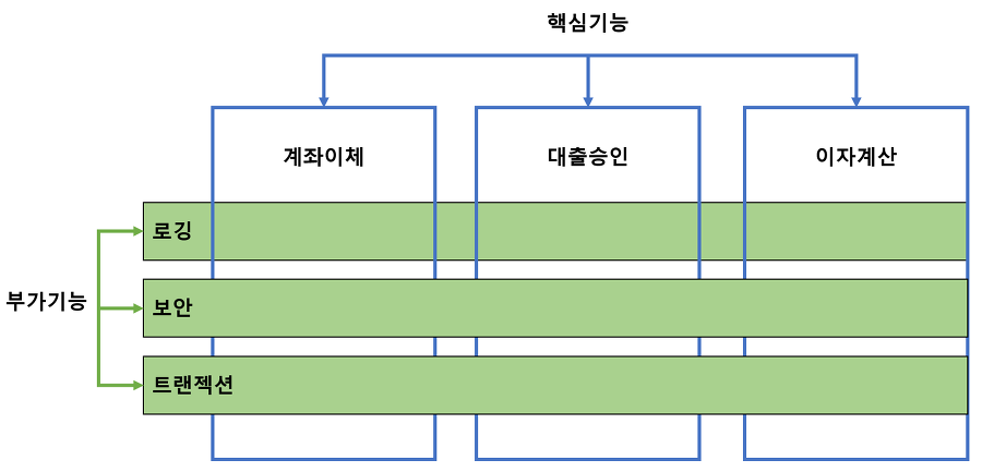 공통기능과 핵심부분을 분리하여,필요할 때에만 공통기능을 핵심부위에 넣어주는 방식