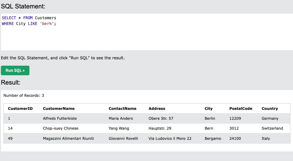 | LIKE | 일부 포함 | Try it |