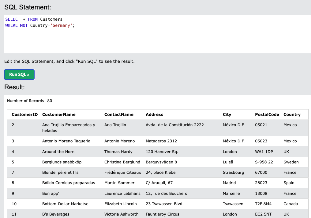 WHERE Country='Germany'