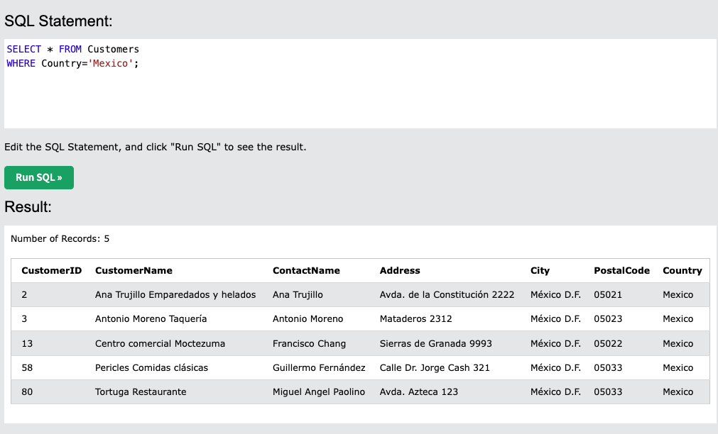 WHERE Country='Mexico';