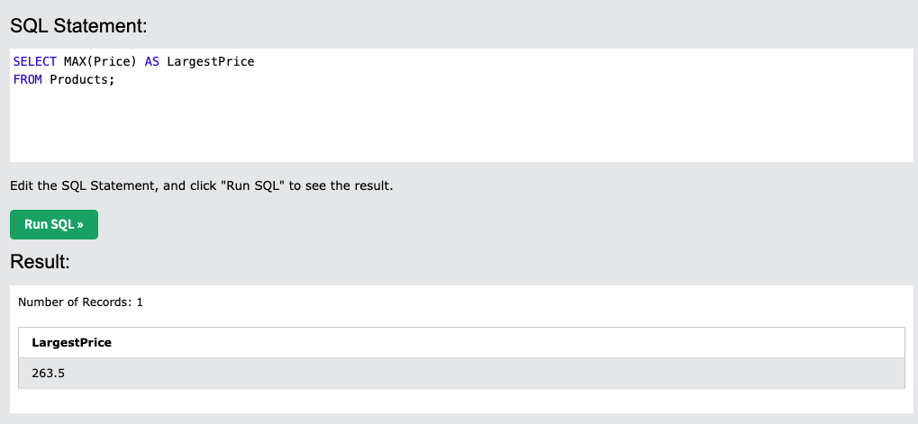 예시) MAX() 최댓값