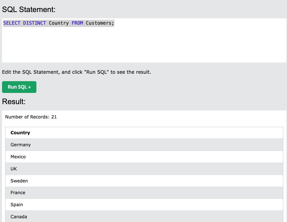 SELECT DISTINCT Country FROM Customers;