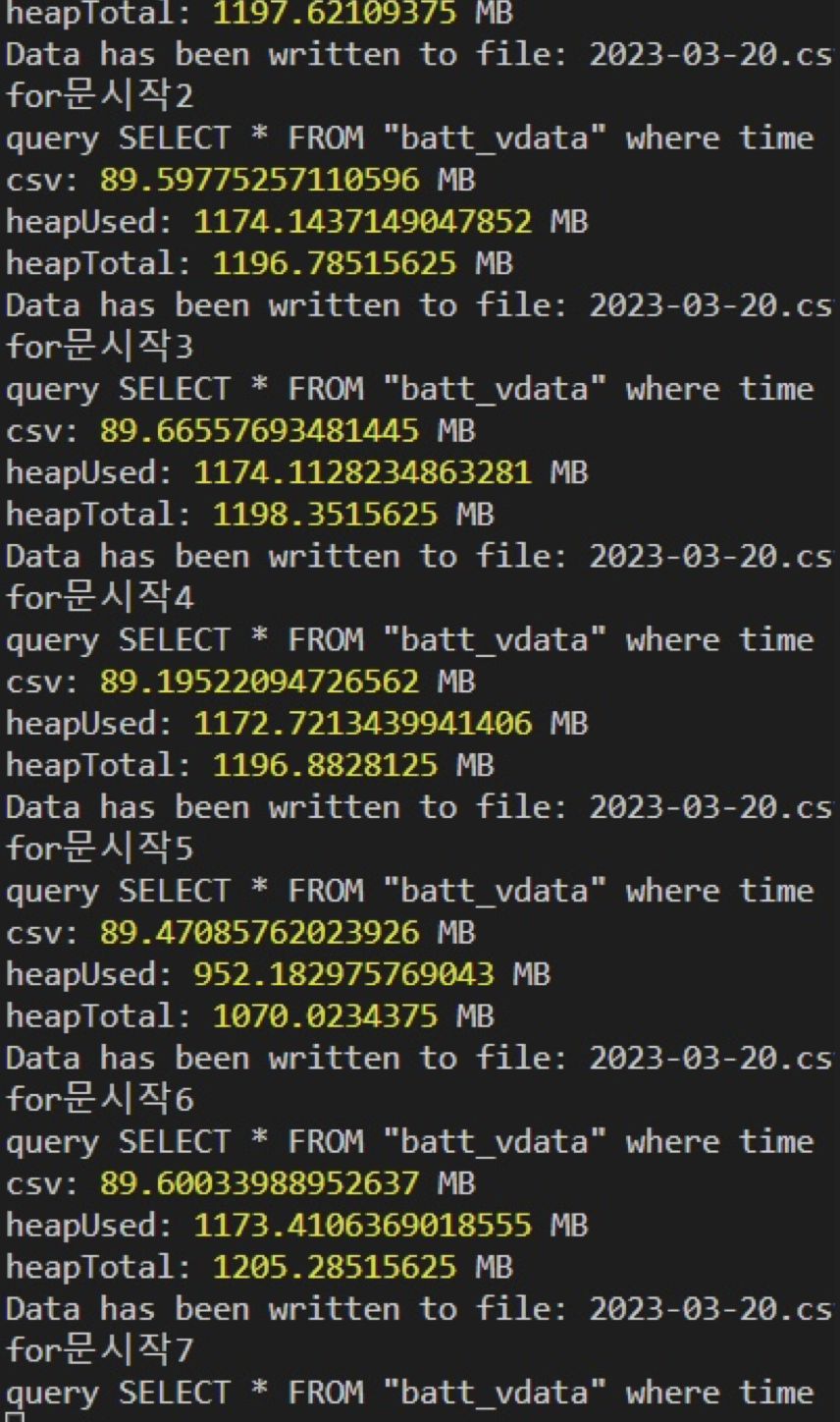 조회 자체가 너무 값을 가져오다 보니 데이터를 가져오는 과정자체에서 사용되는 메모리 문제또한 컸다.
