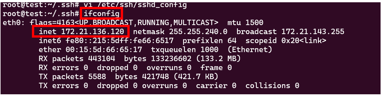 wsl 주소는 ifconfig 명령어를 통해서 확인