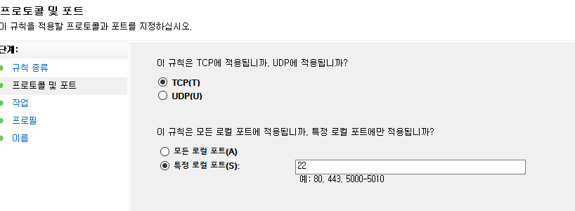 특정 포트는 SSH 서버 포트와 동일하게 열어주어야 한다.