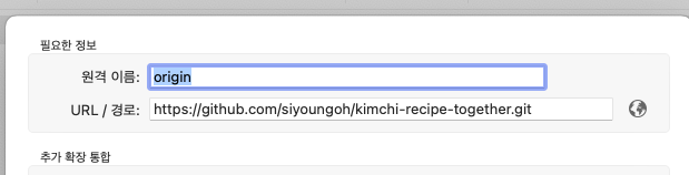 sourcetree열기->우측상단 설정->원격 위 순서대로 가면 아래의 화면을 마주할수있다.