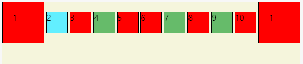 좌우 맨 끝 박스는 끝에 붙이며 나머지는 등간격으로 배치