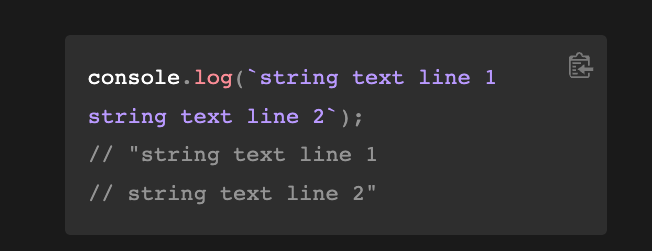 템플릿 리터럴은 내장된 표현식을 허용하는 문자열 리터럴입니다. 여러 줄로 이뤄진 문자열과 문자 보간기능을 사용할 수 있습니다. 이전 버전의 ES2015사양 명세에서는 "template strings" (템플릿 문