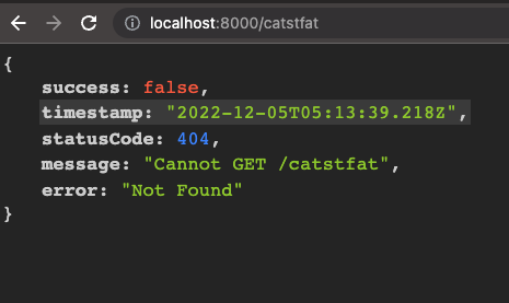 위 HttpExceptionFilter 를 cats.controller GET요청에 적용한 모습
